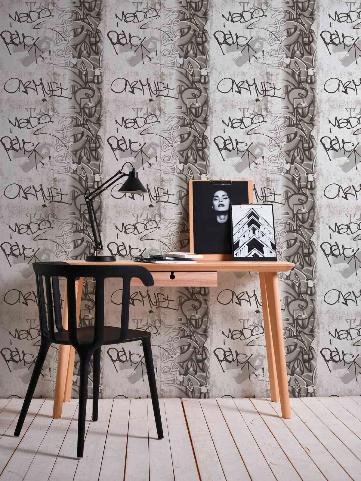 Kindertapete Beton Graffiti grau weiß schwarz Boys & Girls 6 A.S. Création 36986-3 | 369863