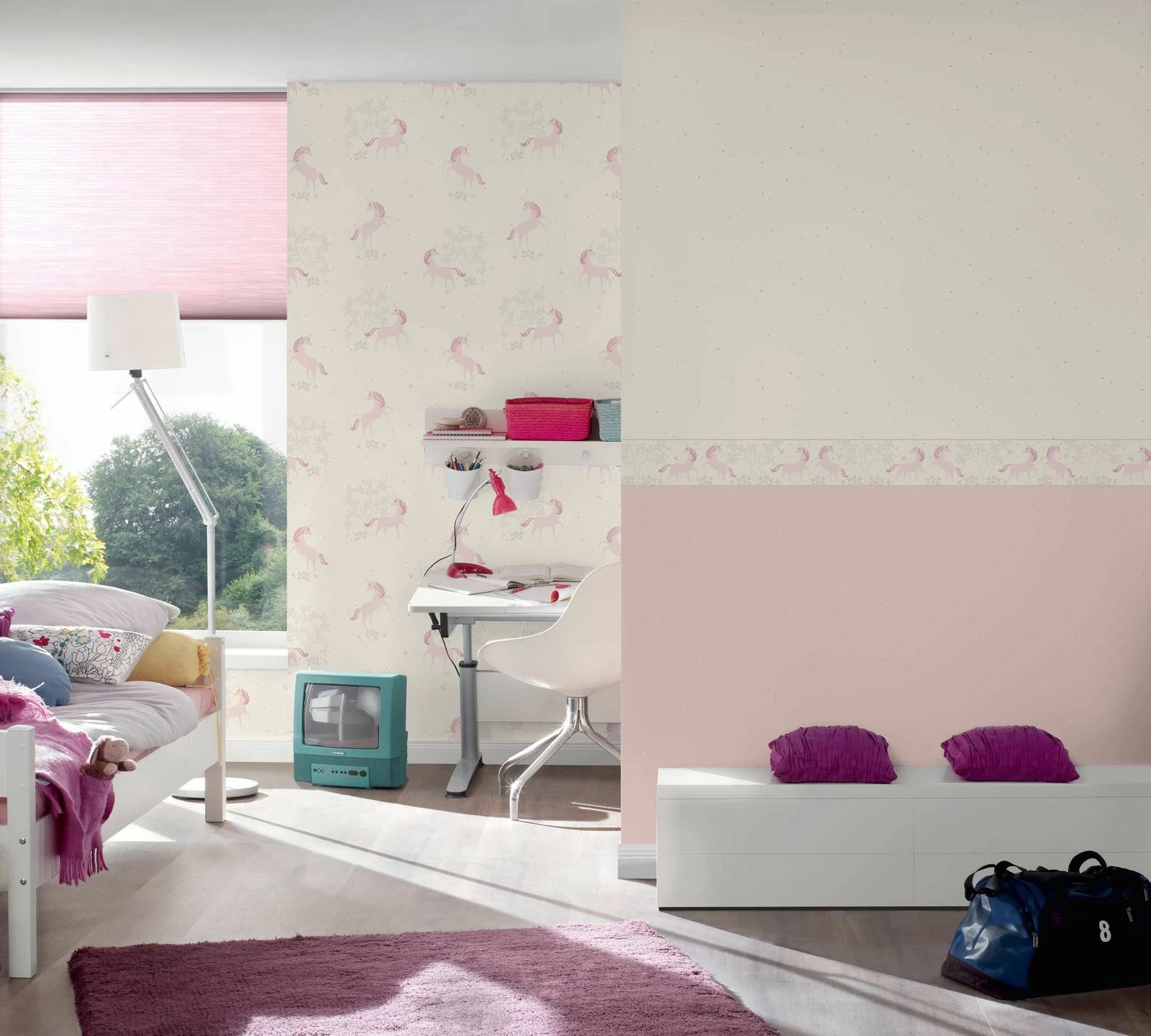 In der Tapetenkollektion „Boys and Girls 6“ lässt A.S. Creation alte, liebgewonnene Kindertapeten Designs wieder aufleben und fügt neue, bezaubernde Designs hinzu. Wie die Tapete 36989-1 im Einhorn Floral Design in weiß, rosa und silber mit Glitzer & Glanz die aus jedem Kinderzimmer eine ganz besondere Spieloase macht. Die Kollektion ist aber nicht nur für Kids, Jungen und Mädchen gedacht, sondern auch für coole Teens mit individuellem Geschmack. So eine breite Auswahl wie sie diese Tapetenkollektion bietet, findet die ganze Familie hier ihre Favoriten – Vielleicht sogar Papa und Mama?