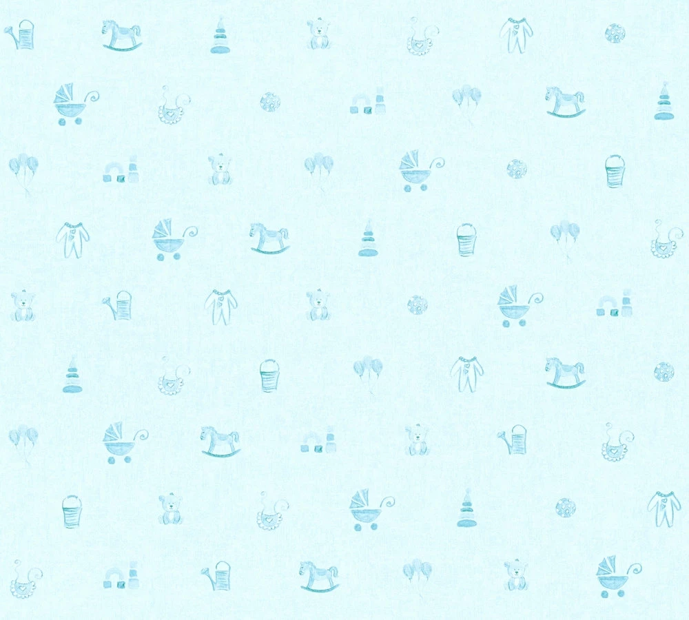Mit den „Little Stars“ Tapeten und Bordüren von AS Creation lässt sich im Handumdrehen aus einem gewöhnlichen Kinderzimmer eine spannende Themenwelt erschaffen. Die Kindertapete 35854-2 sorgt mit ihrer Farbgebung aus hellblau sowie dem heiteren Spielzeugmotiv für eine atemberaubende Spielatmosphäre im Zimmer Ihrer Kinder.