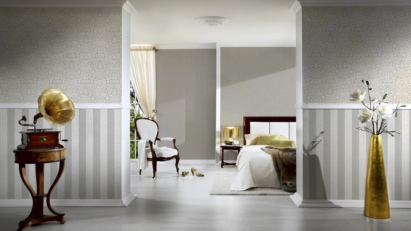 Wenn ein unvergleichliches Wanddekor mit Glanzeffekt zum zeitlosen Modeaccessoire für die Wohnung wird, handelt es sich um die Vliestapete 96193-3 von Architects Paper. Das leicht glänzende Barock-Muster in grau und weiß verschöneret Wohnräume auf eine elegante Art und Weise. Durch das Vliesmaterial ist die deutsche Markentapete waschbeständig, restlos trocken abziehbar und gut lichtbeständig.