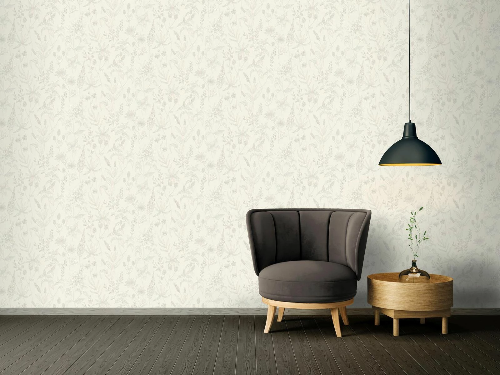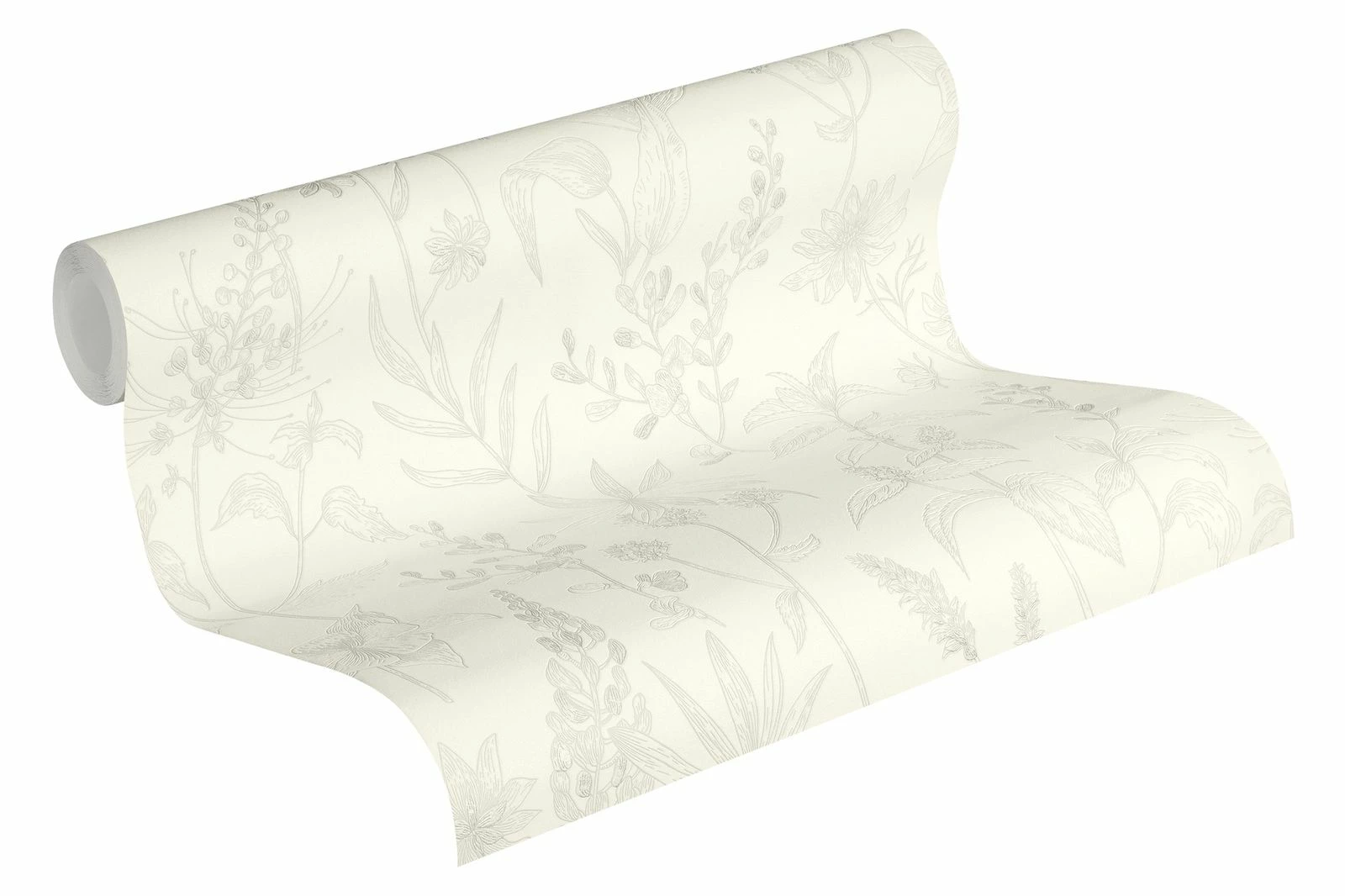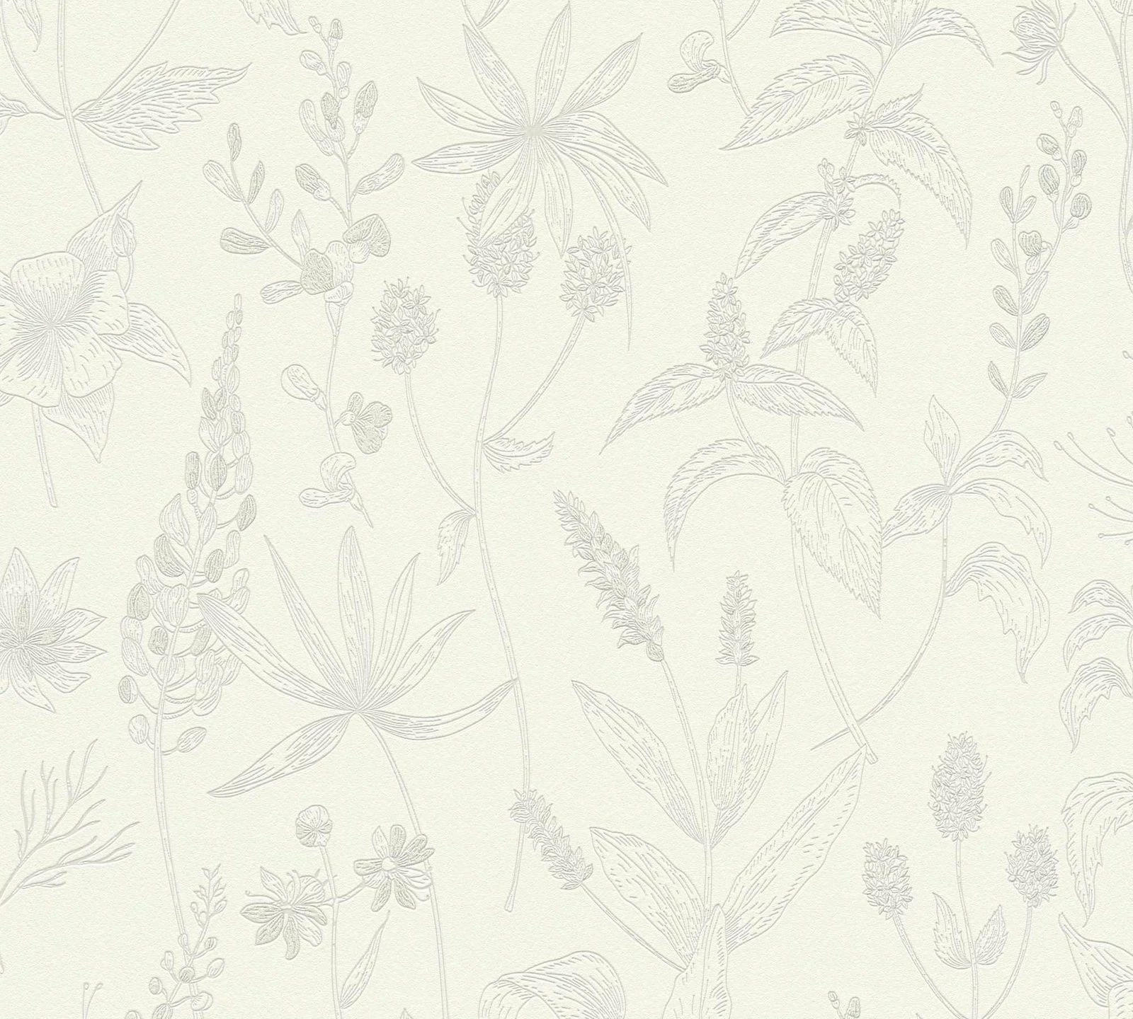 Tapete Vlies Blätter Weiß Greige Glitzer Jette 37363-1