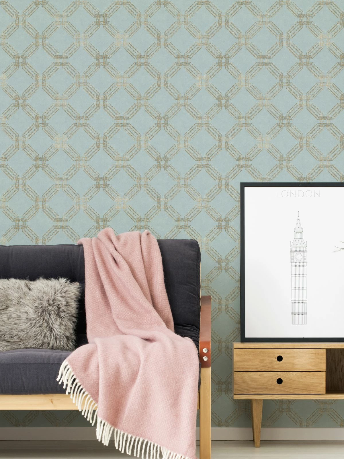 Tapete Vlies Geflecht-Optik blaugrau, gold metallic AS Creation Pop Style 37477-2 | 374772
