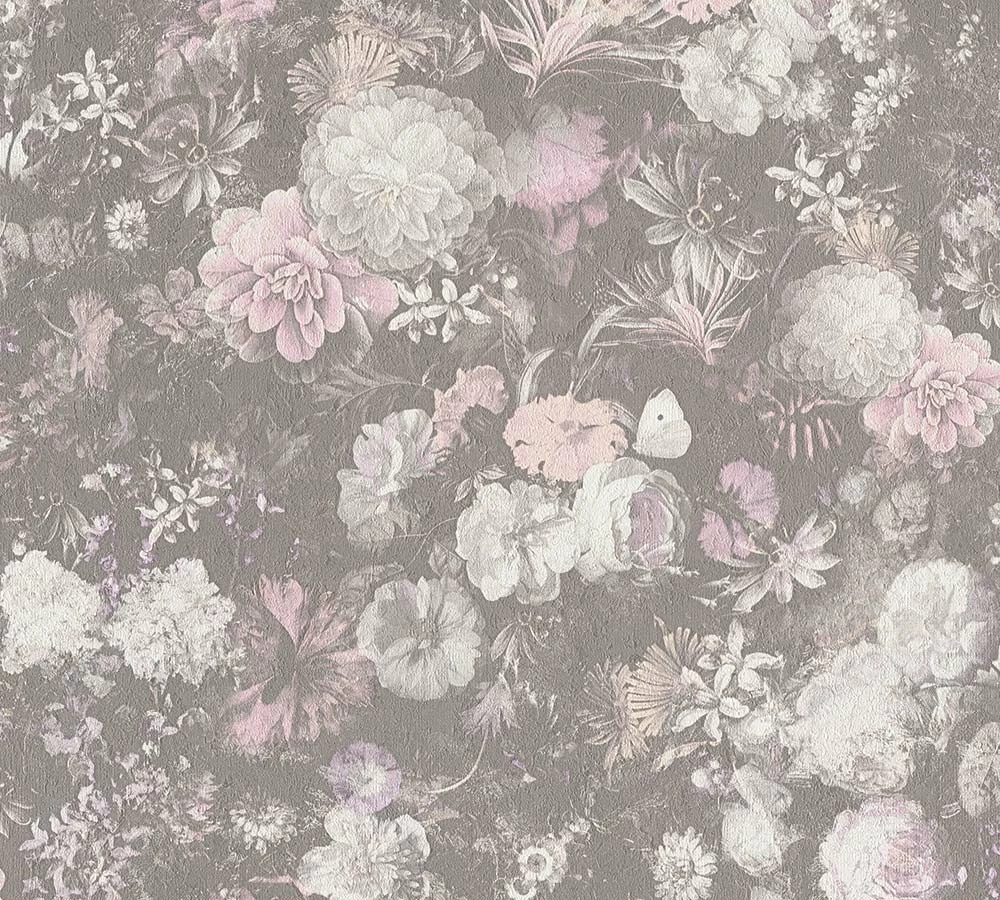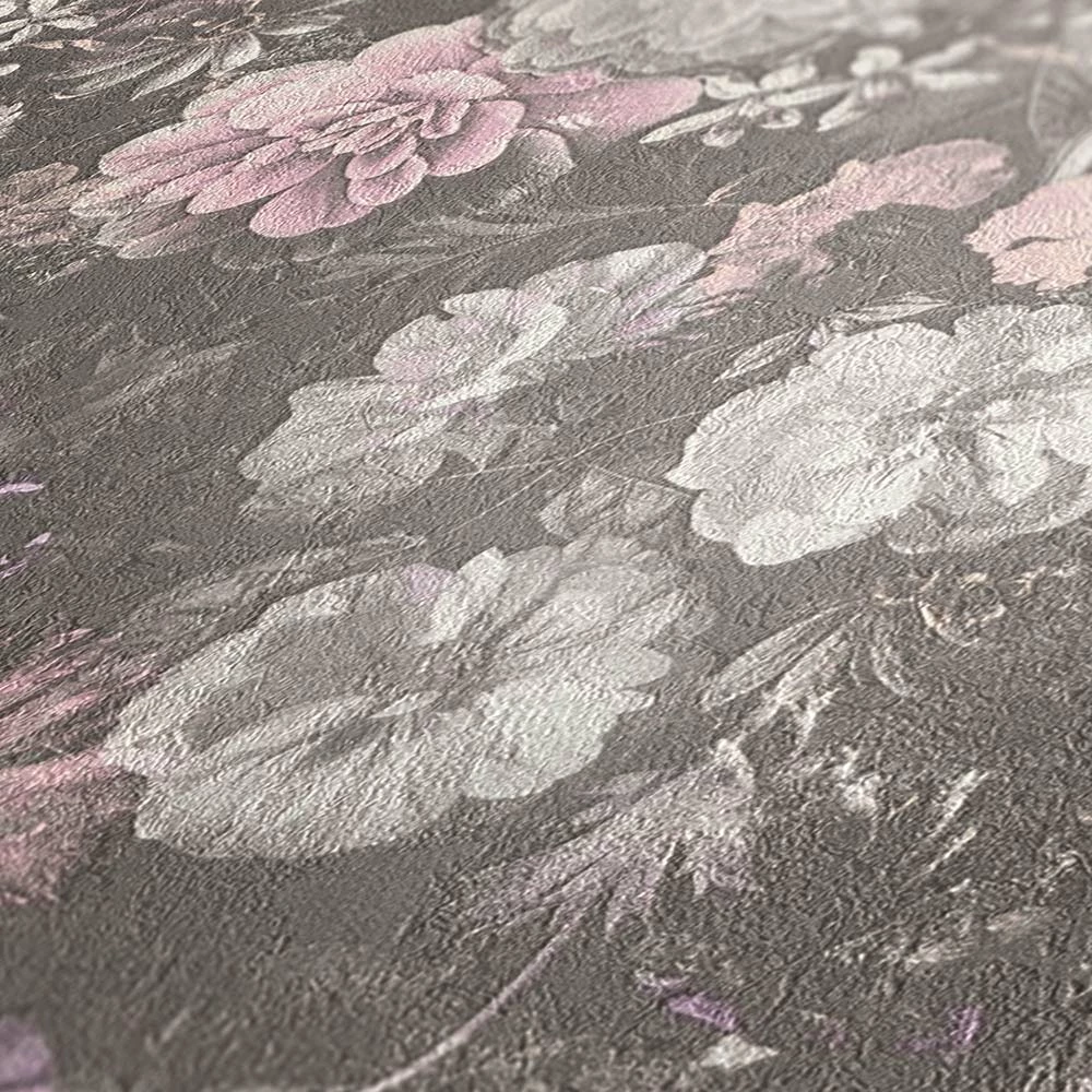 Tapete Vlies Blüten Blumen Floral grau rosa weiß Mata Hari Livingwalls 38095-4 | 380954