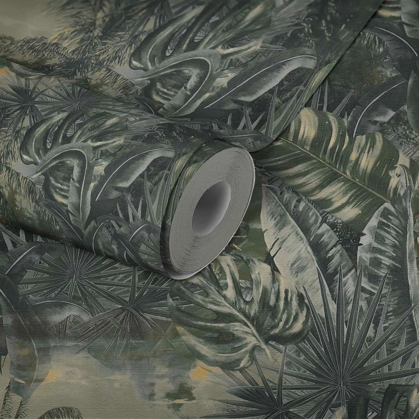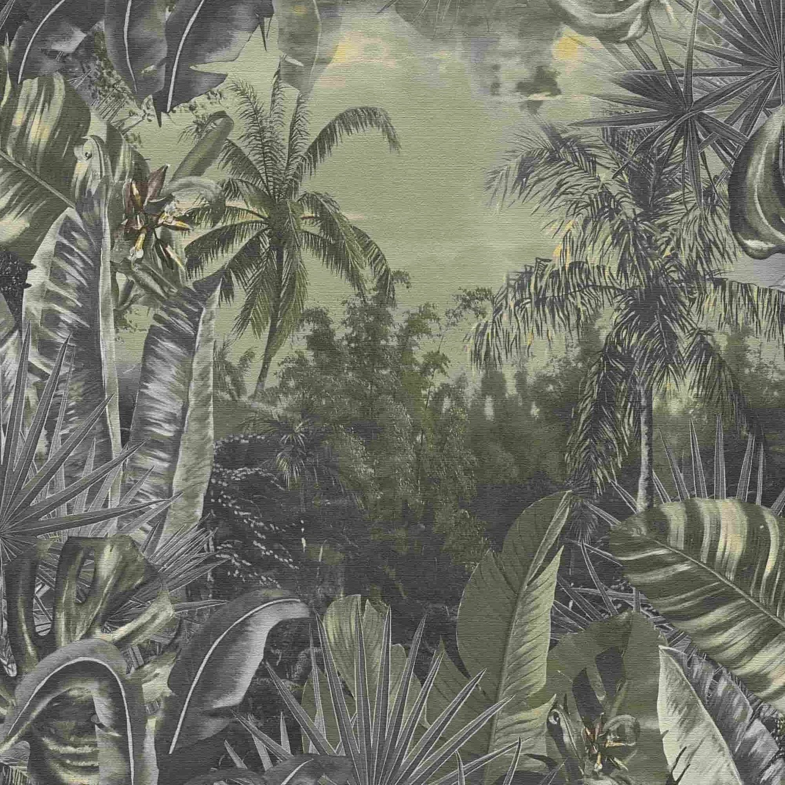 Tapete Vlies Dschungel Blätter grau dunkelgrün Natural Cosy Home My Home My Spa livingwalls 38356-3 | 383563