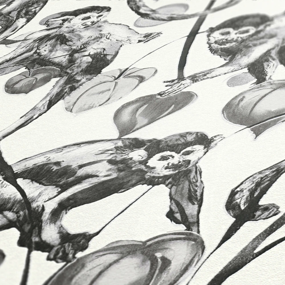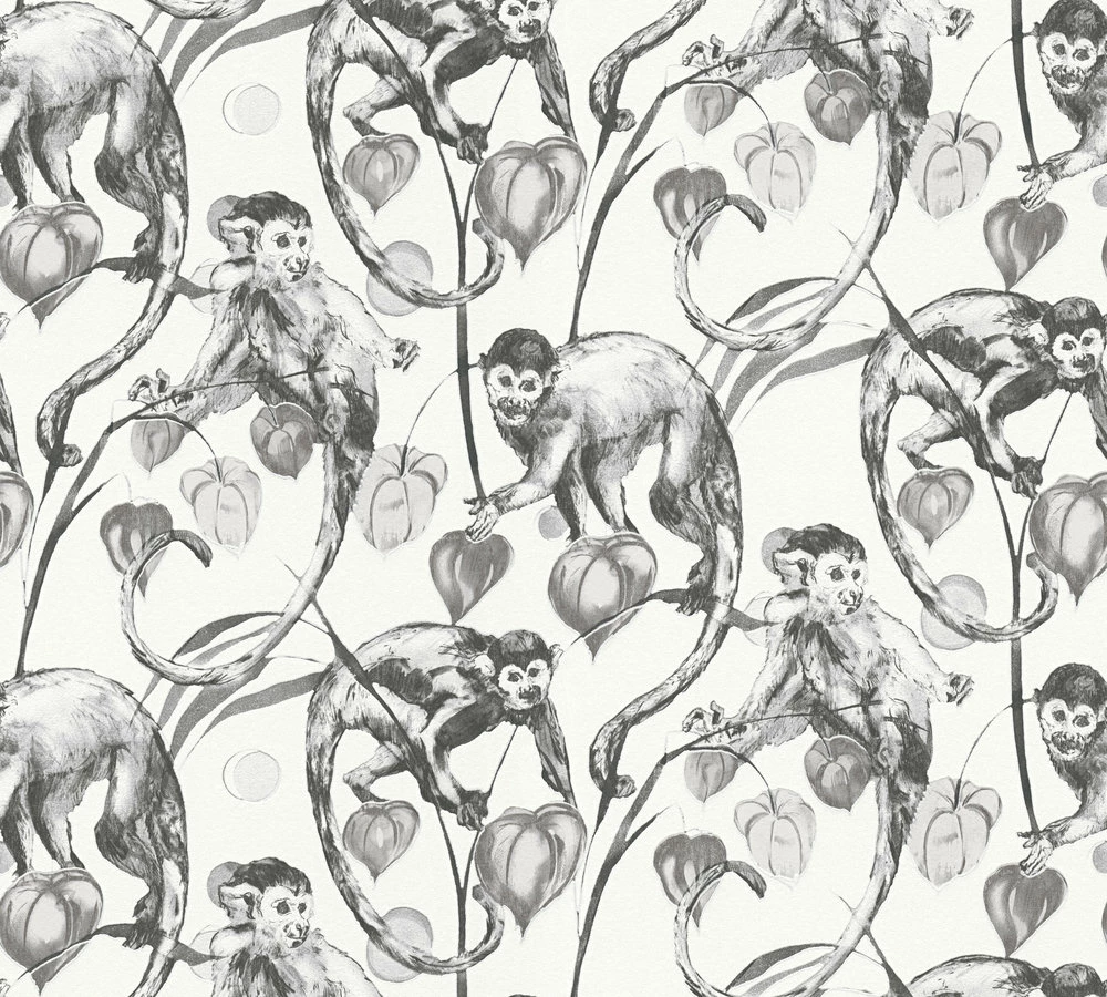 Vliestapete Michalsky Living Dschungel Affen weiß grau 37982-1 | 379821