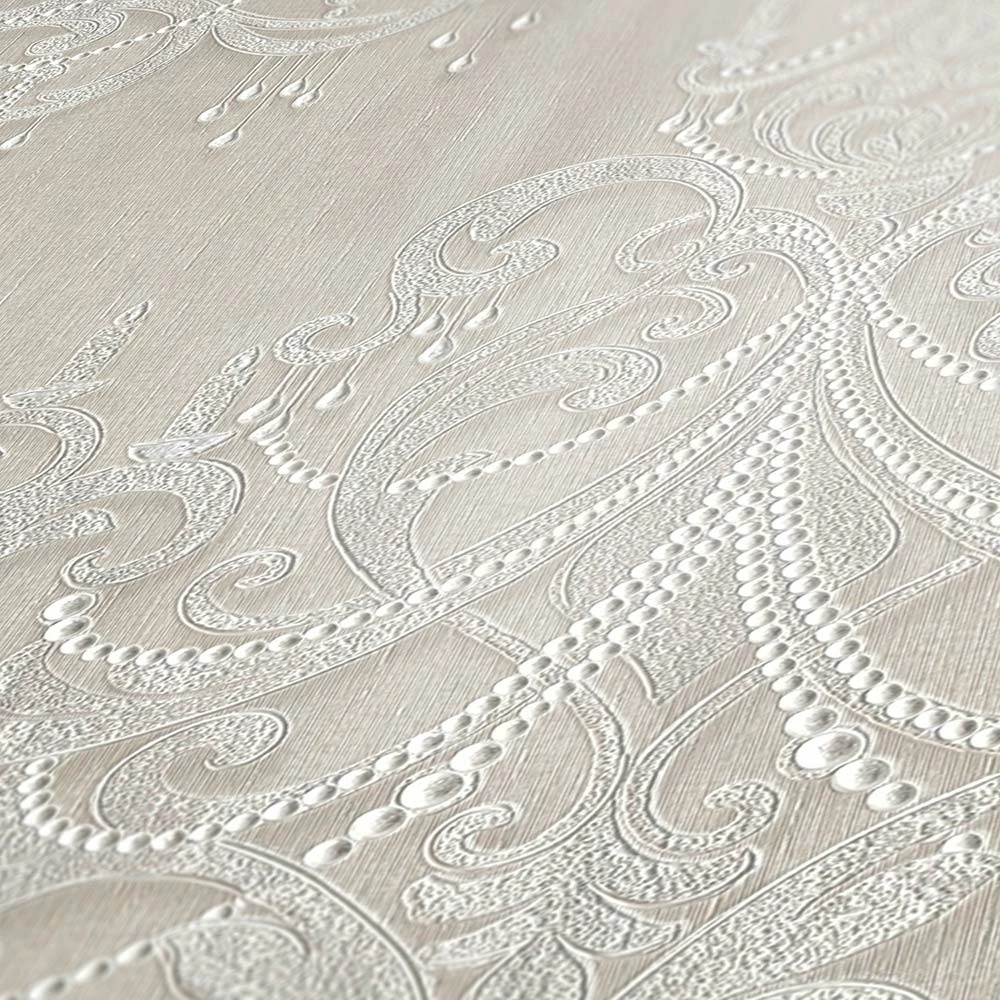 Tapete Vlies Ornamente Barock Greige Silber 38096-2