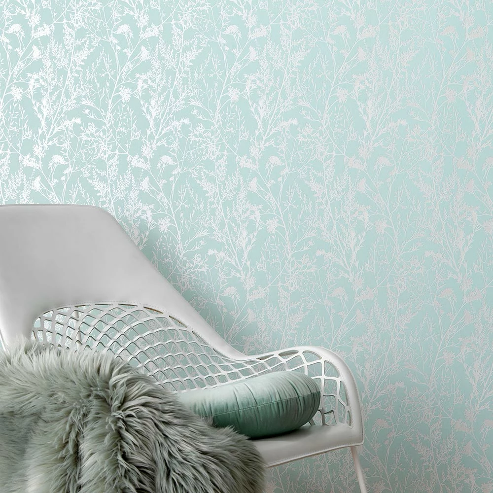 Tapete Vlies Pflanzen Floral Türkis Silber 10251-18