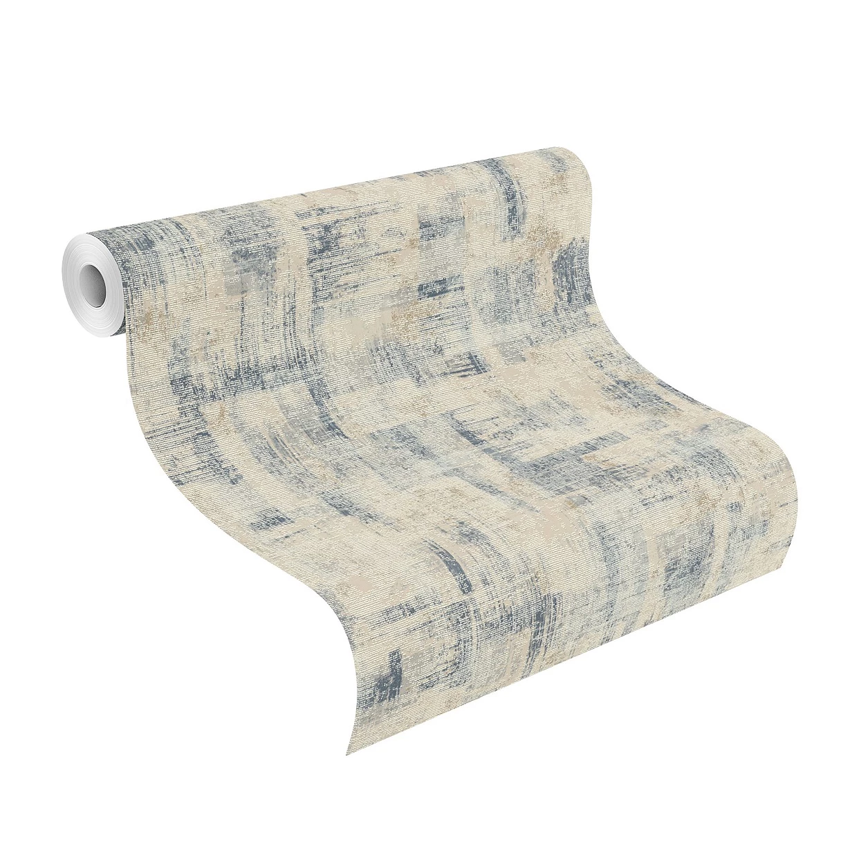 Tapete Vlies Rasch Uni Vintage Beige Blau 650457