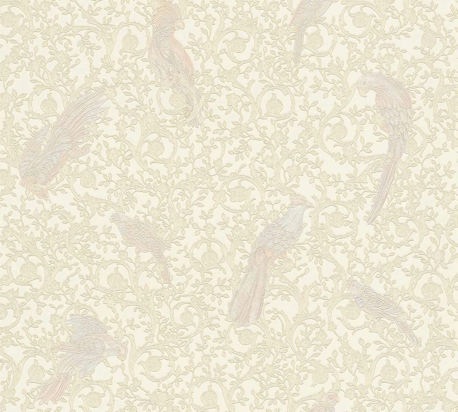Versace Home IV Vinyltapete Barock Papageien creme weiß Metallic 370535
