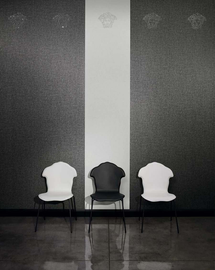 Die Einrichtungsmarke Versace Home steht für exklusives und hochwertiges Interiordesign. Dabei erfindet sich die Designermarke mit ihren glamourösen Kreationen immer wieder neu und setzt damit unangefochtene Maßstäbe im Einrichtungsbereich. Mit der dritten Auflage der erfolgreichen Versace Home Tapetenkollektion setzt die Luxusmarke erneut ausdrucksstarke Akzente im Wohnbereich. Inspiriert von Prunk und Eleganz sowie der griechischen Mythologie verzaubert Sie das Versace Tapetenpanel 32950-1, aus der Themenreihe Medusa, mit einem antiken Ambiente. Dieses Ambiente wird durch das kräftige Kolorit aus grauweiß Glanz sowie der aufregenden Struktur stilvoll in Szene gesetzt. Die Kombination aus Farbe und Struktur führt letztendlich dazu, dass das Leinen-Optik mit Medusa Kopf Abbildungen zum Hauptaugenmerk Ihrer Wandgestaltung wird.