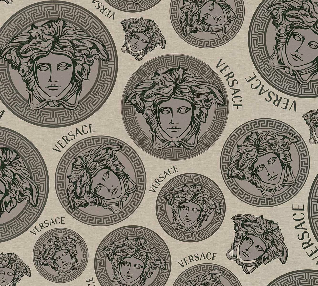 Mit den Vliestapeten der Versace Home 5 Kollektion bringen Sie den einzigartigen Stil der Luxusmarke Versace an Ihre Wände. Die Tapeten zeigen typische Versace Motive wie Medusaköpfe oder Mäandermuster. Aber auch schlichte Uni-Tapeten können Sie hier finden. Die Tapete 38611-2 in Beige- und Grautönen besticht durch ein Medusa-Kopf Motiv. Lassen Sie sich von den Versace Home Tapeten überzeugen und entdecken Sie die komplette Kollektion bei uns im Shop.