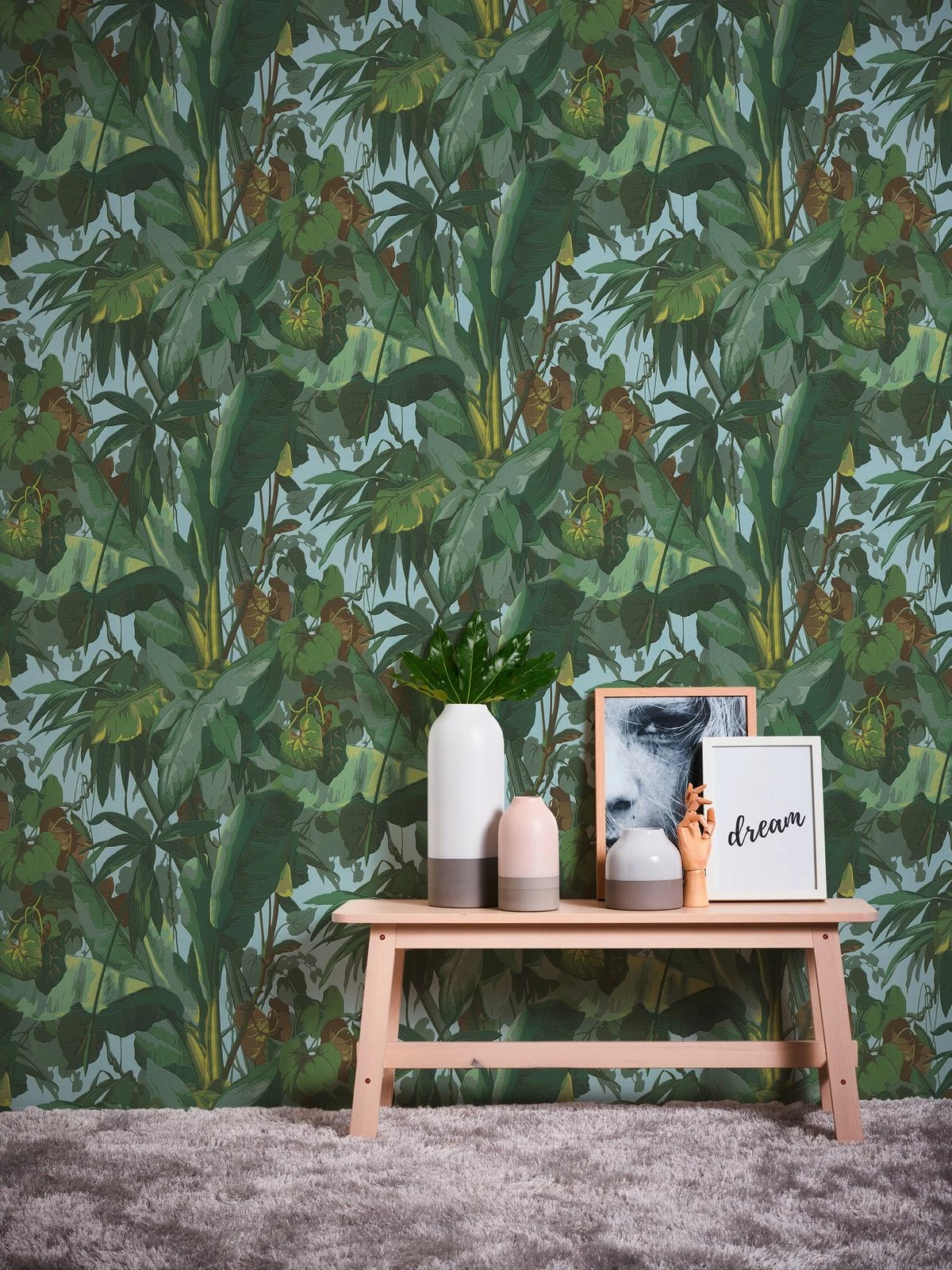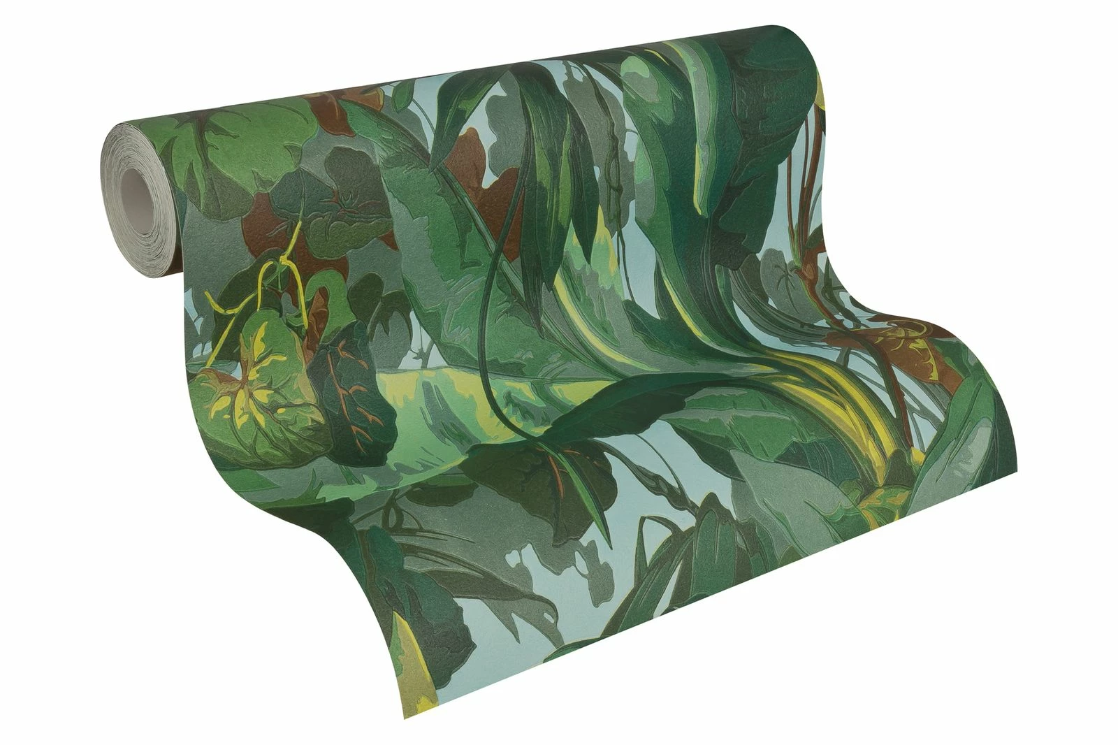 Vinyltapete 95898-1 Cartoon Blätter Wald Grün Blau Braun