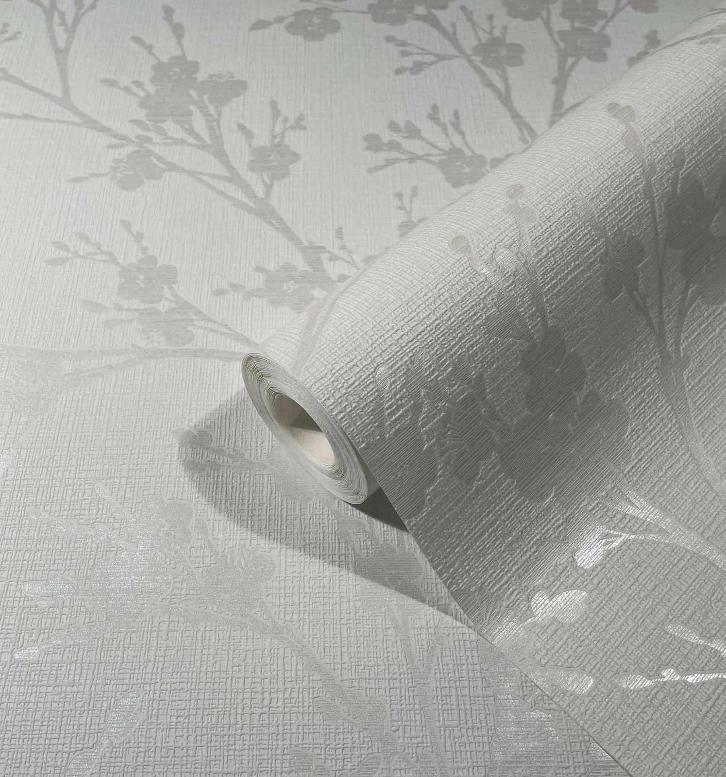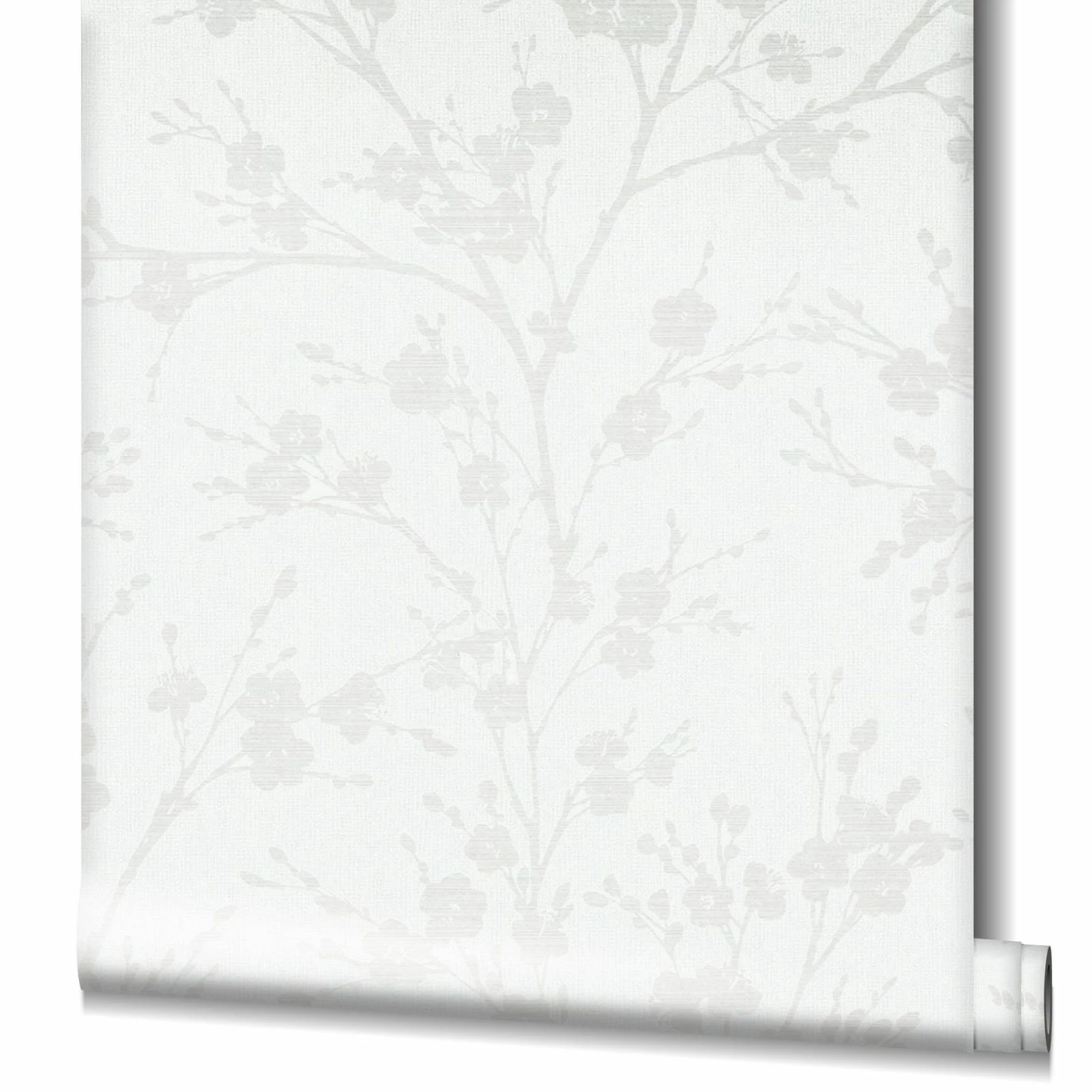 Vliestapete 82313 aus der Kollektion Ivy von Novamur mit Kirschblütenmotiv in weiß mit Glanz