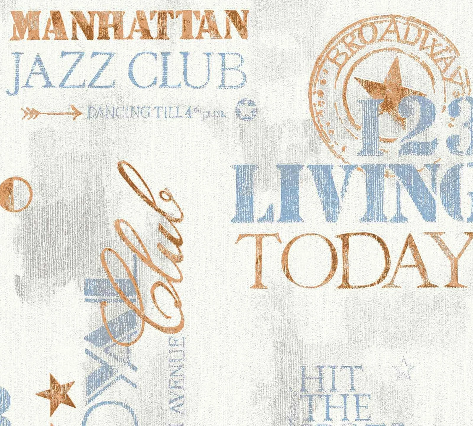 Vliestapete Broadway Vintage kupfer blau weiß Metallic A.S. Creation 36812-1 | 368121